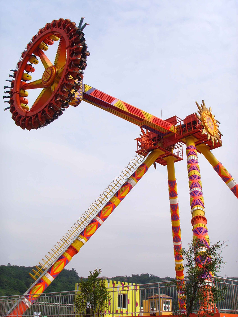 大擺錘:游樂中經典的大擺錘,對于常去游樂園的人并不陌生。他的游樂方式是巨大的鐘擺伴隨著旋轉大幅度的往復搖擺挑戰心理的極限。在極易失去重心的高空中乘客門隨著擺錘搖擺的弧度,游客往往情不自禁的發出驚呼與歡笑,極大的提高了整個游樂場的歡樂氣氛,使許多游客留連忘返,不愿離開。